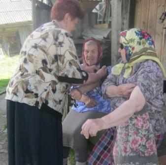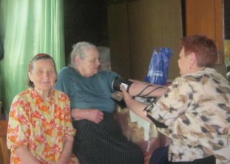 Во время визита специалист центра, Михайловская А.В., интересовалась нуждами пенсионеров их и проблемами. Предлагала свою помощь в виде социального обслуживания на дому или проживания в одном из двух стационарных отделениях комплексного центра. Фельдшер - Акшинцева Г.И справилась о здоровье одиноко проживающих пенсионеров, померила артериальное давление, дала медицинские консультации, оказала необходимую помощь.