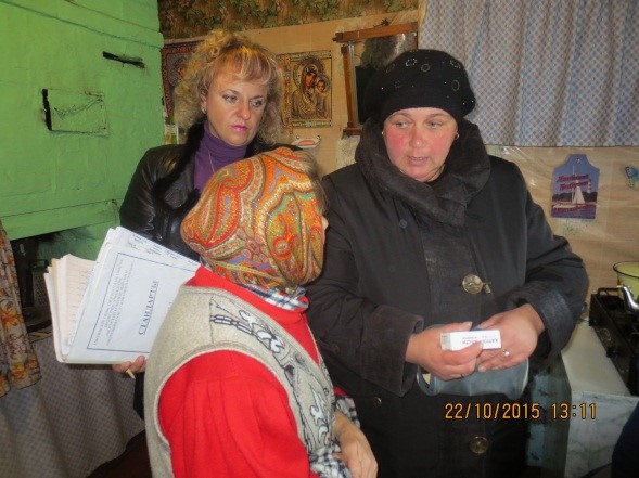 Мобильная бригада в составе: заведующей отделением надомного обслуживания – Бондаренко С.А., специалиста по социальной работе Максимовой Е.С., заведующей Мещерским ФАП – Киреевой В.К. побывала в Мещерском сельском поселении.