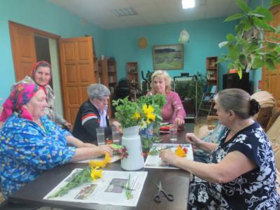 Во второй половине дня занятие по «Гарденотерапии» продолжили уже в комнате для отдыха, обновляя композиции из цветов для своей столовой. Занятие прошло на высоком эмоциональном подъёме. Каждый из получателей социальных услуг, проживающий в отделении стационарного социального обслуживания, под руководством зав. отделения Кравченко В.А. выбрал для себя растения и собрал букетик на стол. Важно, что в этом творческом процессе разрабатывалась моторика рук и реализовано личное пожелание каждого из присутствующих на этом занятии.