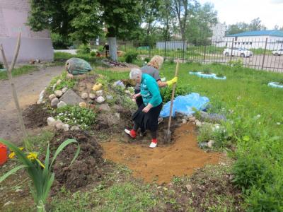 Первым шагом создания будущего искусственного пруда были наброски примерного эскиза водоема и бурное его обсуждение. Затем определились с местоположением, освободили площадь и принялись к земляным работам. Процесс выкапывания пруда достаточно тяжел, поэтому эту функцию на себя взяла энергичная заведующая отделением стационарного обслуживания.