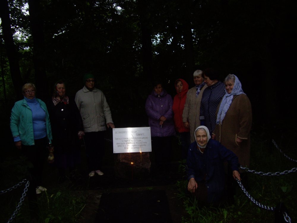 Члены клуба и приглашенные собрались у церкви Михаила Архангела. 28 человек начали свое шествие к местам боев. В поселке несколько таких мест, все они ухоженные, за всеми жителями поселка организован надлежащий уход. Сначала посетили памятный знак на месте взрыва в 1943 г. школы, где во время войны располагался госпиталь. Школа была взорвана вместе с ранеными бойцами. Памятный знак был установлен на средства местных жителей в благодарность воинам, не пожалевшим своих жизней ради светлого будущего своих потомков. Активный участник клуба Ануфриева Т.Г. рассказала всем собравшимся об этом трагическом событии, в память, как символ скорби и стремительно ушедших жизней, были зажжены поминальные свечи. После участники мероприятия скорбной процессией двинулись к братской могиле, где захоронено более 4000 воинов Советской Армии, погибших в 1941-1945 гг. в боях с немецко-фашистскими захватчиками. В завершении посетили памятник «Семлевскому подполью», зажгли свечи, почтили память воинов минутой молчания.