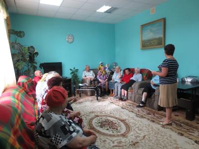 В ходе мероприятия заведующая отделением стационарного социального обслуживания населения Скворцова А. В. рассказала 18 получателям социальных услуг интересные факты о российском триколоре. Объяснила значение трех параллельных цветных полос, которые олицетворяют следующее: