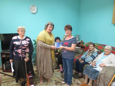 В завершении литературно-музыкальной программы Татьяна Нестерова подарила в библиотеку СОГБУ «Вяземского КЦСОН» книгу собственного сочинения.