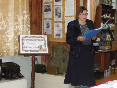 В здании Темкинского краеведческого музея «серебряный» волонтер Богачева Лариса Викторовна подготовила мероприятие «Устный журнал Героев Отечества». Мероприятие было посвящено Дню Героев Отечества, который празднуется 9 декабря. Целью и задачами мероприятия стало: ознакомление с праздником День Героев Отечества, формирование нравственно-патриотических чувств у людей старшего поколения, создание условий для формирования чувства гордости за свою Родину. Волонтер рассказал об истории праздника: о Графе Орлове В.В., кавалере Ордена Георгия, уроженца д. Васильевское Темкинского района; о темкинцах Героях Советского Союза, а также о Героях нашего времени. Отличным дополнением к докладу стало его видеосопровождение. Видеопрезентация проецировалась на большой экран, была яркой, интересной и запоминающейся.