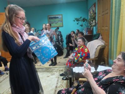 Визитеры организовали небольшой концерт, исполнили всеми любимые и всеми знакомые радостные и позитивные песни. Гости приехали не с пустыми руками, как всегда привезли подарки. В преддверии новогодних праздников так хочется верить в чудо! И его для 19 бабушек и дедушек организовали волонтеры. Ведь это действительно чудо, когда совершенно незнакомые молодые люди совершенно безвозмездно, от чистого сердца дарят бескорыстное добро.