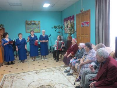 Артистки появились на сцене в красивых, одинаково подобранных по цвету и фасону синих платьях. Зазвучали задушевные, лирические и веселые песни о любви, о жизни. Вслед за ними шумным многоголосьем зазвенели задорные частушки. Все песни были исполнены под аккомпанемент аккордеона. Зрители рукоплескали исполнительницам и подпевал им. Вокальный ансамбль «Супер-бабушки» от души порадовал своих поклонников праздничным концертом, подарив всем присутствующим радость и хорошее настроение. Атмосфера добра и приподнятого настроения заполнила зрительный зал. Все, и слушатели, и участники мероприятия, были полны задора, бодрости и оптимизма.