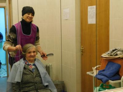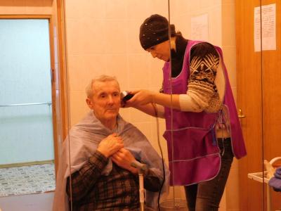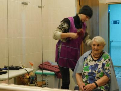 25.12.2017 г. руководство Центра решило сделать подарок всем нашим подопечным бабушкам и дедушкам. Пригласили опытного мастера, который поработал над их прическами. Услуга была предоставлена на безвозмездной основе, добровольной акции дали название «Искорка доброты». Проживающие ждали мастера с самого утра, она приехал к точно назначенному времени. Работники СОГБУ «Вяземский КЦСОН» уже второй раз организовывает подобную благотворительную акцию по оказанию парикмахерских услуг. Мастер перед стрижкой, выяснив предпочтения каждого, бралась за дело. С высоты своего профессионализма, чтобы подчеркнуть красоту и природное обаяние каждого особенного клиента, она давала ценные рекомендации по дальнейшей укладке и уходу за стрижкой. Мастеру удалость подарить нашим старичкам ощущение радости и предчувствие праздника! Из парикмахерского кресла пожилые люди выходили обновленными, помолодевшими и счастливыми.