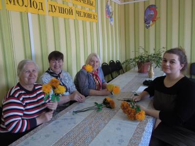 Работа в «трудовой мастерской» способствует у граждан пожилого возраста развитию художественных способностей и эстетических чувств, умению замечать прекрасное, любоваться и восторгаться объектами природы. Удивительные получились цветы: яркие, солнечные, сделанные заботливыми руками граждан пожилого возраста.