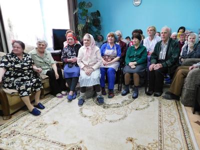 Проживающие нашего Центра радушно встретили творческий коллектив Дома ветеранов. Для сотрудников и проживающих получателей социальных услуг артисты исполнили проникновенные, лиричные и задорные мелодии. Это были всем знакомые народные и патриотические песни, которые с огромным удовольствием подпевали и наши зрители. Каждый номер артистов сопровождался бурными овациями и криками браво. Программа была задорной и разнообразной, что каждый слушатель нашёл в ней то, что ему было очень хорошо знакомо.