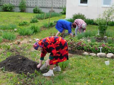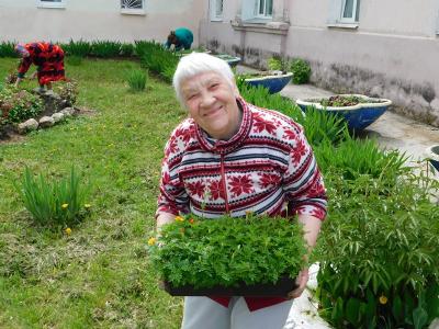 Пожилые люди с удовольствием принимали участие в трудовой деятельности. Пропололи, обновили и покрасили клумбы с многолетниками. Благодарные весенние цветы сразу же запестрели ярким многоцветием: белые и желтые нарциссы, сочно малиновые примулы, нежные крокусы и фиалки. Цветущие растения радуют глаз, тонкий аромат парит в воздухе и поднимает настроение.