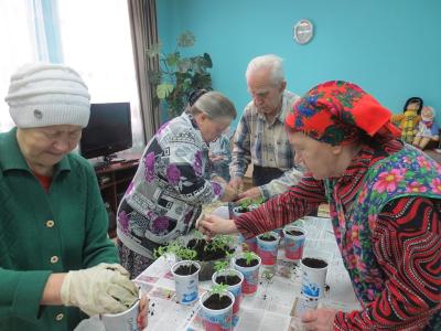 Инновационная технология пользуется заслуженной популярностью. С момента открытия нового огородного сезона, когда были посажены первые семена, прошло достаточное количество времени. Все это время за растениями производился бережный уход, аккуратный полив, рыхление и пикирование рассады. В мае огородные работы подошли к новой фазе. Растениям стало тесно и душно стоять на подоконниках, выращенной рассаде настала пора переселяться. После того как дождались устойчивой погоды в дружеской обстановке, проживающие Центра совместно с заведующей стационарным отделением социального обслуживания высадили в открытый грунт рассаду цветов: петуньи, георгины, циннии, бархатцы для озеленения территории Центра.