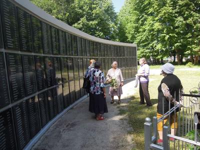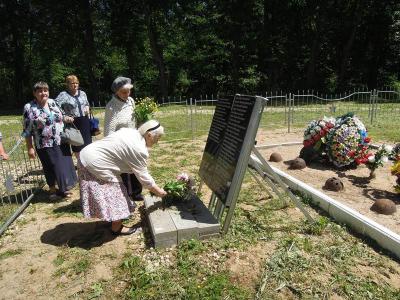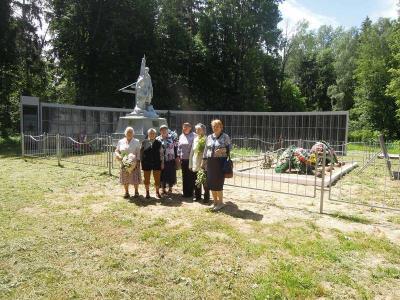 Во второй части экскурсии на месте братской могилы советских воинов Лариса Викторовна рассказала о людях, не вернувшихся с войны, которые родились, были призваны и захоронены в деревне Васильевское. Получатели социальных услуг возложили цветы на братскую могилу.