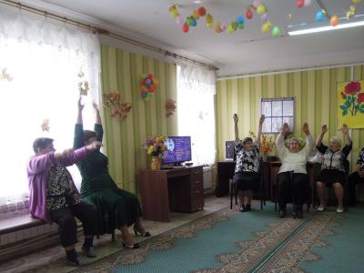 Праздник начался с физических упражнений, своим секретом долголетия в виде ежедневной зарядки поделилась со всеми 78 летняя член мини-клуба, в прошлом врач Злобина Г.С.