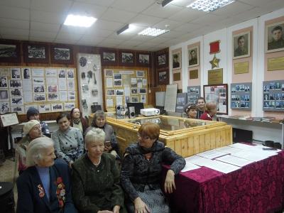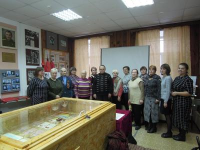 В здании Темкинского краеведческого музея Серебряный волонтер Лариса Викторовна подготовила презентацию, которую проецировала на большой экран.