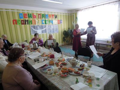 Во время чаепития специалист по социальной работе рассказывал о жизни Великой певицы, а также на экране телевизора прошел показ видеофрагментов выступлений Людмилы Петровны.