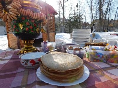 Как водится, на масленицу, столы ломились от угощений и, конечно же, во время праздника всех угощали блинами со сметаной, вареньем, медом, конфетами, баранками и горячим чаем. От души повеселились, пообщались друг с другом, получили заряд бодрости и энергии. Проводили зиму символичным сжиганием чучела Масленицы.