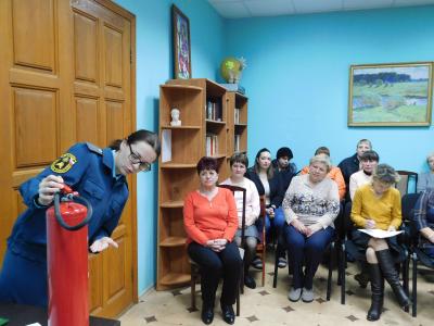 Старший инспектор отдела надзорной деятельности и профилактической работы Вяземского, Темкинского и Угранского районов Аниськина Юлия Андреевна провела разъяснительную беседу, рассказав о правилах использования электроотопительных приборов в квартирах и домах, о мерах предосторожности во время топки печей, сушки белья в домах, использования газовых плит. Рассказала на что в первую очередь должен обращать внимание социальный работник, заходя в дом к получателю социальных услуг, особенно в сельской местности. Это на то, что стоит на печи, на газовой плите, не оставил ли по растерянности пожилой человек чего-либо у открытого огня. Рассказала как действовать во время пожара, куда звонить при его возникновении, как пользоваться огнетушителем и первичными средствами