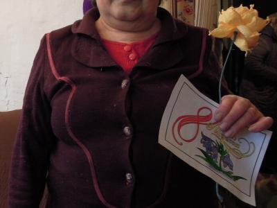Получателям социальных услуг были подарены цветы, которые были сделаны своими руками членами мини-клуба «Вдохновение» и поздравительные открытки, с теплыми пожеланиями крепкого здоровья, семейного благополучия, любви, душевного уюта, весеннего настроения.