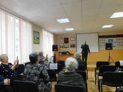 28.01.2021 г. в «Клубе золотого возраста» (Вязьма) состоялась первая в этом году встреча участников Клуба. В качестве почетных гостей были приглашены глава администрации Вяземского района, председатель Вяземского районного совета ветеранов, председатель Вяземской районной организации "Всероссийское общество инвалидов», директор СОГБУ «Вяземский КЦСОН». Встреча прошла в теплой и дружеской обстановке. Исполнялись душевные песни, читались стихи, звучали добрые слова.