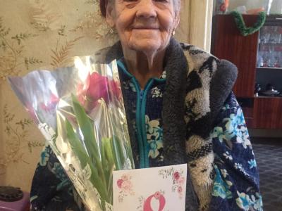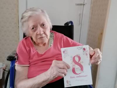 Милые женщины - получатели социальных услуг с благодарностью принимали поздравления и озарялись лучезарными улыбками.