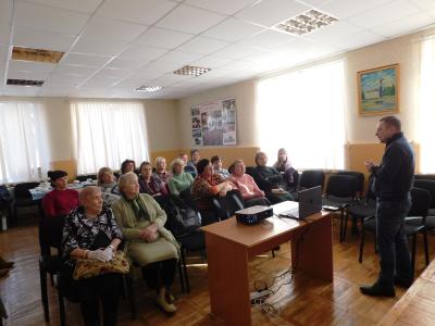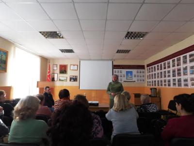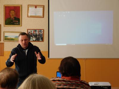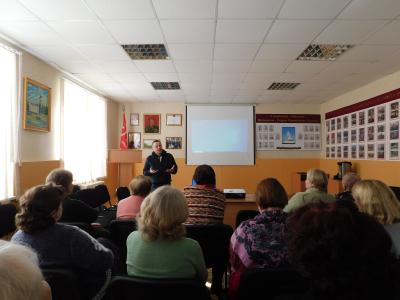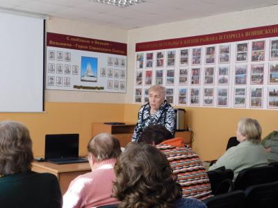 На встречу был приглашен Михайлов Игорь Геннадьевич, заведующий мемориальным комплексом «Богородицкое поле» Государственного историко-культурного и природного музея-заповедника «Хмелита». Он рассказал собравшимся о трагической судьбе, постигшей почти все сформированные дивизии во время Вяземской оборонительной операции в 1941 году, о фашистской оккупации, во время которой гитлеровцы установили в городе жесточайший террор, о сожженных вместе с жителями деревнях, о выжженном городе, об искалеченных судьбах и героических подвигах.