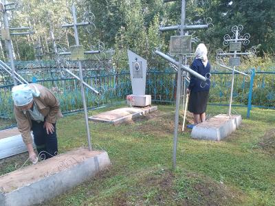 Сотрудники центра выполнили колоссальную работу по облагораживанию места захоронения: вынос веток, уборка и вынос травы, сорняков, окраска оградки, подсыпали песком могилки.