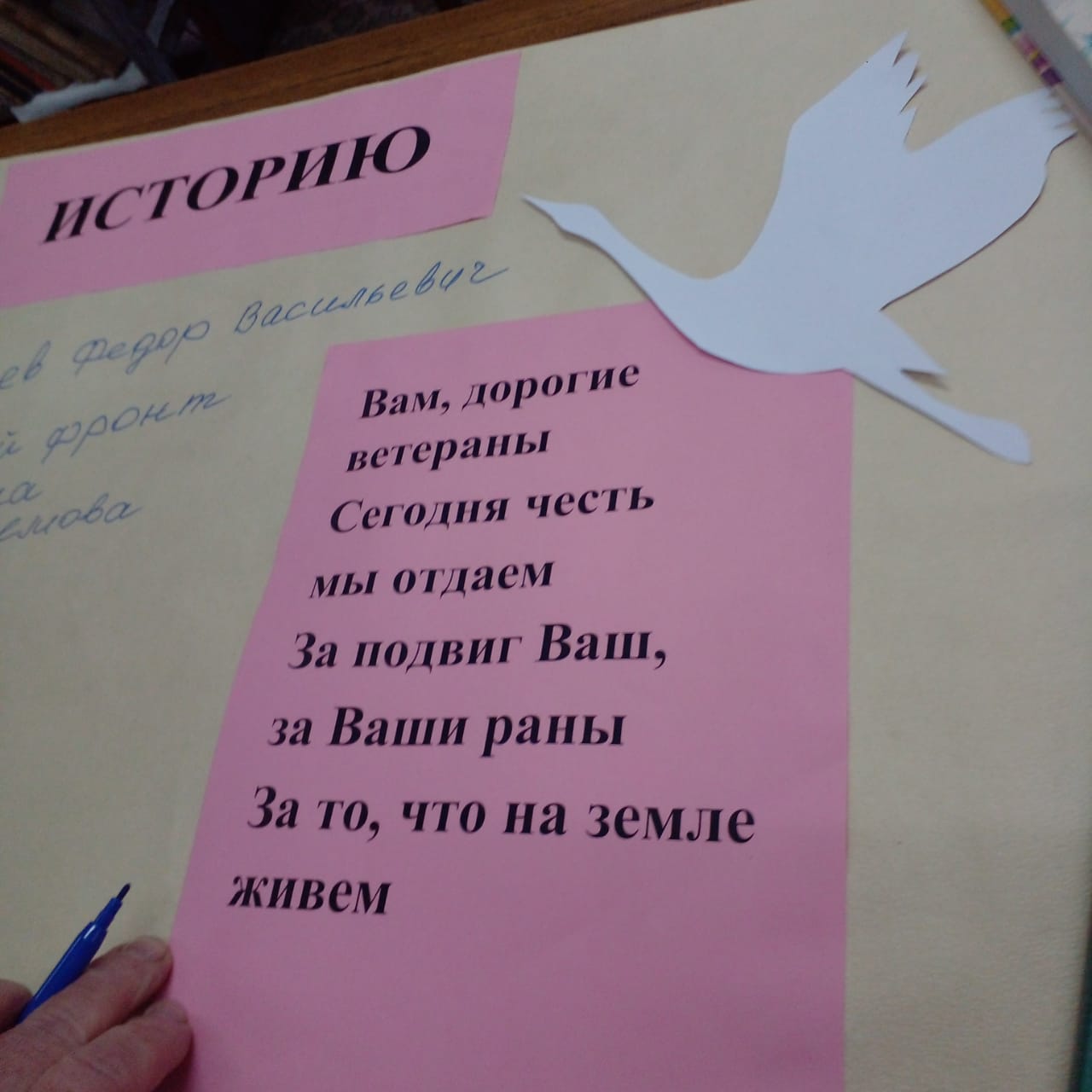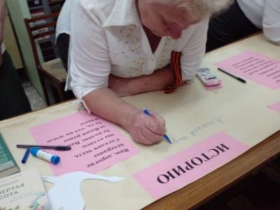 Члены клуба «Серенада души» накануне праздника Победы с 7 мая по 9 мая в центре села Семлево Вяземского района на доске объявлений разместили ленту памяти «Впиши имя своего героя в историю». Родственники, знакомые вписывали имена участников военных действий в Чечне, Афганистане, на СВО. Участие в акции - это возможность почтить память ушедших Победителей, выразить благодарность тем, кто в настоящее время защищает нас.