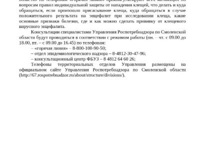 Горячая линия по профилактике клещевого энцефалита