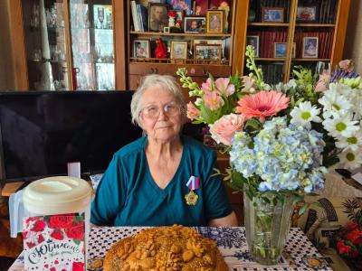 15.05.2024 г. поздравление с юбилем 80-летием получила Бодрова Валентина Федоровна. От Вяземской Епархии ей был вручен большой и красивый каравай. От коллектива социального обслуживания на дому преподнесли красивый букет цветов, поздравительную открытку и подарок, а также теплые пожелания.