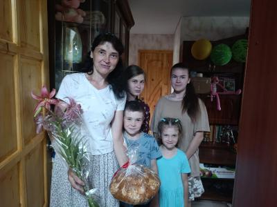 Накануне этого прекрасного праздника сотрудники СОГБУ «Вяземский КЦСОН» посетили многодетные семьи и поздравили их. Сотрудники подарили караваи, испеченные Вяземской Епархией, букеты цветов и пожелали семьям любви, взаимопонимания, счастья и семейного благополучия.