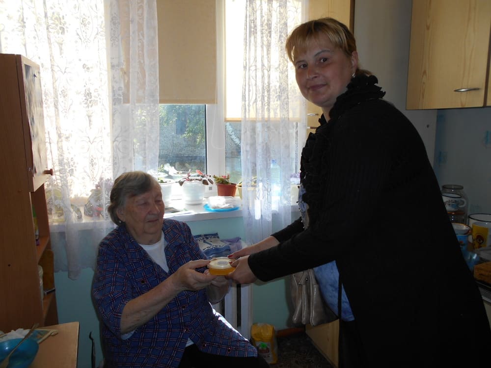 14.08.2024 г. серебряный волонтер Гаврилова Галина Ивановна совместно со специалистом по социальной работе угранского отделения СОГБУ «Вяземский КЦСОН» провели акцию «Медовый спас всем медку припас». После богослужения (освящения меда) в храме Кирилла и Мефодия раздали мед получателям социальных с СОГБУ «Вяземский КЦСОН».