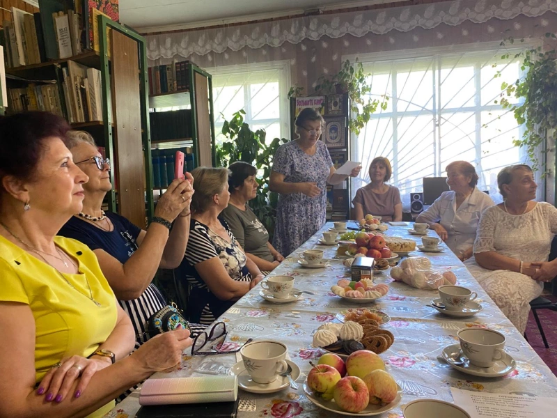 Закончилось мероприятие чаепитием. Присутствующие угощались разными сладостями и наливными яблоками.