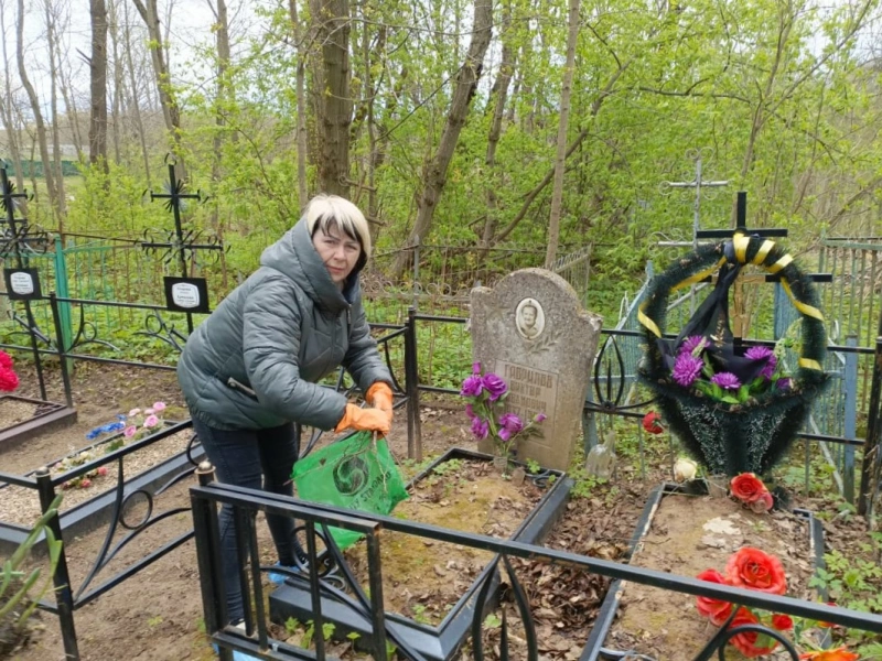 В рамках технологии «Твори добро» прошла благотворительная акция по уборке семейного захоронения. 22 апреля 2024 года сотрудниками СОГБУ «Вяземский КЦСОН» была оказана помощь получателю социальных услуг Гавриловой Анне Николаевне по уборке семейных могил от мусора. Перед Пасхой (05 мая 2024 г.) и радоницей, каждый человек старается навести порядок и чистоту на кладбище.