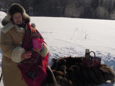 В этот солнечный зимний день, несмотря на мороз, пожилые люди с большим удовольствием позировали. Фотографии на санках на фоне заснеженного леса получились отменными.