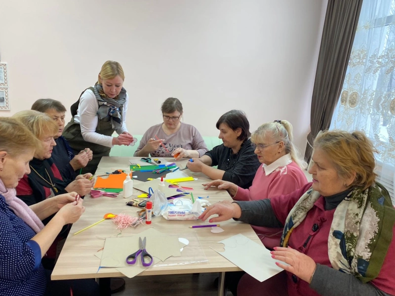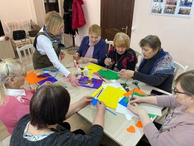 В преддверии Международного женского дня в клубе «Золотого возраста» Угранского отделения «Вяземский КЦСОН» совместно с младшим научным сотрудником «Угранского районного исторического музея» Тимофеевой Кристиной Юрьевной прошел мастер-класс "Сердечный букет".