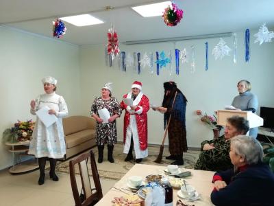 На мероприятии участники разыграли сказку «Репка» на новый лад. Персонажами были: ведущий, елочка, дед мороз, баба яга, снегурочка, волк, лиса, заяц и мышка. С большим удовольствием все участвовали в различных конкурсах, пели песни и танцевали. Все прошло с юмором и задором. В завершении праздника пожилым людям были вручены подарки в виде символа года.