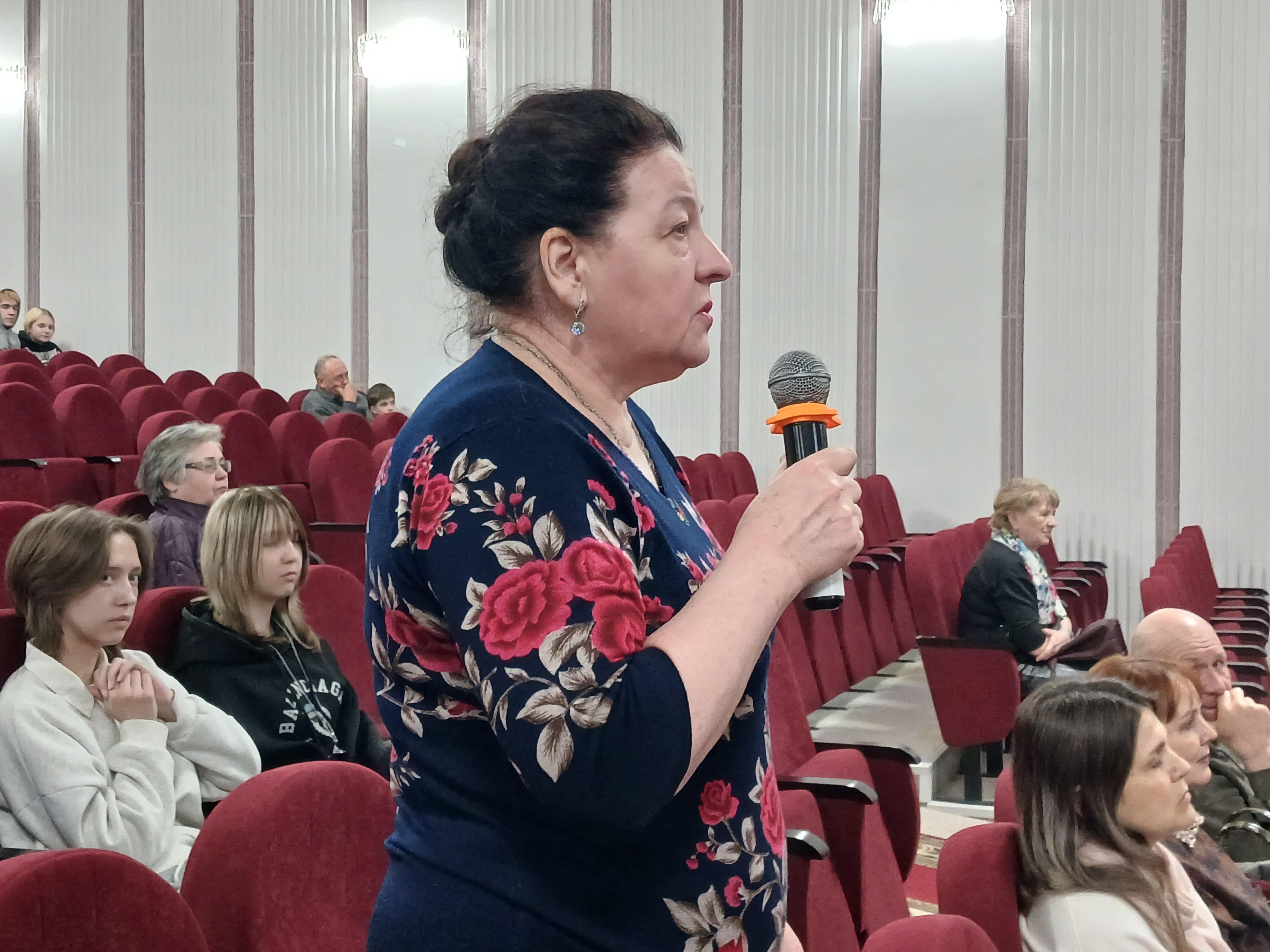 Фильм представил режиссёр, сценарист, заслуженный деятель искусств Калядин И.И. После показа было обсуждение фильма. Зрители активно задавали вопросы и в их числе Терещенко Л.А. постоянный член нашего клуба. А в конце встречи все с удовольствием сфотографировались с режиссёром и организаторами конкурса.