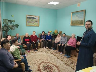 В Клубе «Активное долголетие. Вязьма» прошла традиционная встреча с отцом Дмитрием настоятелем храма Петра и Павла. Речь шла о православных праздниках февраля, о правилах соблюдения Великого поста, о духовном очищении в Великий пост.