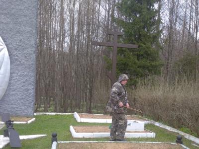 27.04.2022 года сотрудниками СОГБУ «Вяземский КЦСОН» была проведена акция «Экологический десант» совместно с серебрянным волонтером Новиковой Викторией Алексеевной уборка памятника 4ВДК.
