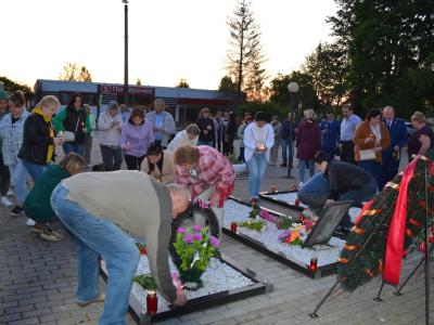 Затем присутствующие проследовали к памятнику Неизвестного солдата, где состоялся митинг, по завершению которого, собравшиеся возложили живые цветы к подножью памятника и зажгли свечи. Участники клуба «Золотого возраста» Угранского отделения «Вяземский КЦСОН» также приняли участие в акции.