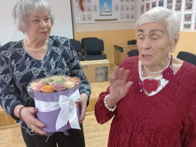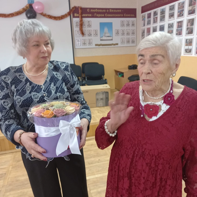 2 февраля 2023 года в Клубе Золотого возраста отмечался День рождения нашей старейшины Колмагоровой Нины Яковлевны. Специально для нее Галиной Юрьевной были написаны частушки. Каждый участник клуба смог поздравить именинницу одной из частушек. Специально для Нины Яковлевны была исполнена ее любимая песня, под которую она танцевала с Юрием Яковлевичем Жанжаровым. Участники клуба преподнесли букет из 15 роз, сделанных из бельгийского шоколада. Многие члены клуба подарили цветы. Директор СОГБУ «Вяземский КЦСОН» Е.А. Давыдова не осталась в стороне и преподнесла свои поздравления имениннице.