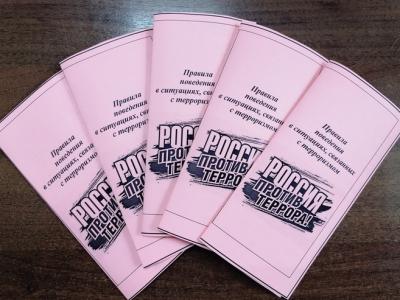 В связи с этим в рамках работы Школы безопасности, сотрудники Центра провели акцию «МЫ ПРОТИВ ТЕРРОРИЗМА» и с 02.09.2022 г. по 09.09.2022 г. будут распространены среди получателей социальных услуг информационные памятки «Россия против террора», в которых содержится информация о действиях при угрозе теракта, о том, что делать при обнаружении взрывного устройства и как вести себя в данной ситуации.