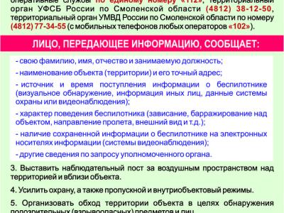 - Выставить наблюдательный пост за воздушным пространством над территорией и вблизи объекта.