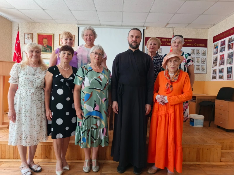 В связи с чем 10 июля 2025 года в клубе «Золотого возраста» в г. Вязьма состоялась духовная встреча с настоятелем храма святого Петра и Павла отцом Дмитрием.
