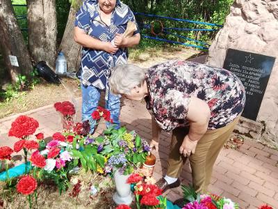 Участники группы возложили цветы, и почтили память павшим воинам в великой отечественной войне, минутой молчания.