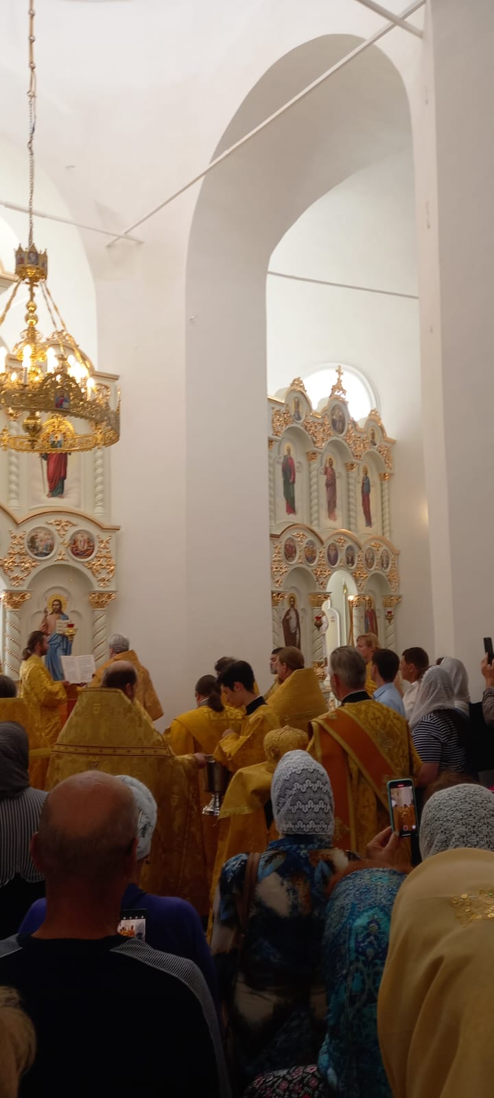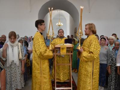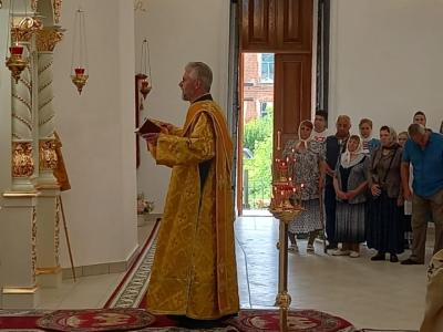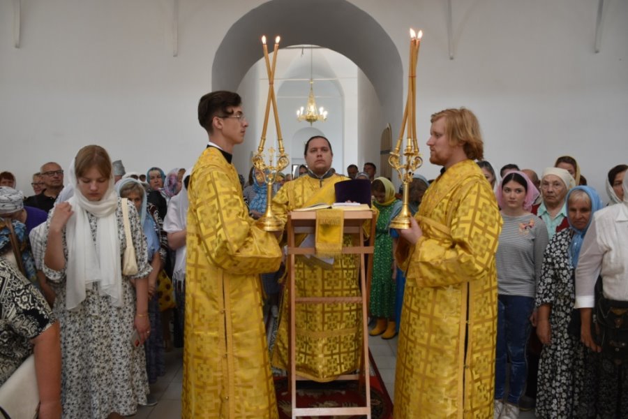 После Великого освящения храма, епископ Вяземский и Гагаринский Сергий совершил Божественную Литургию святого Иоанна Златоустого.