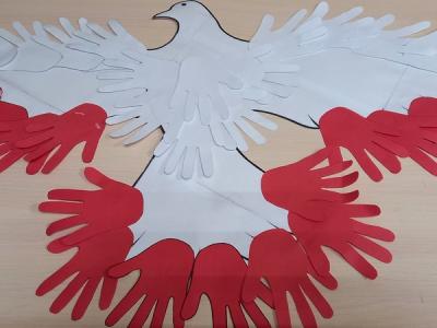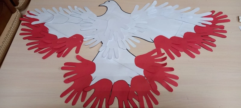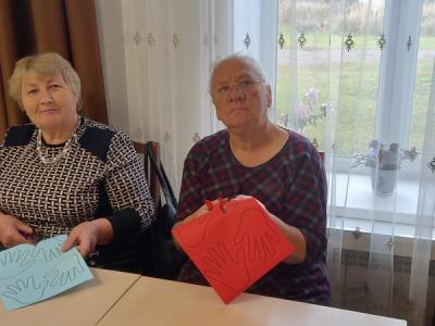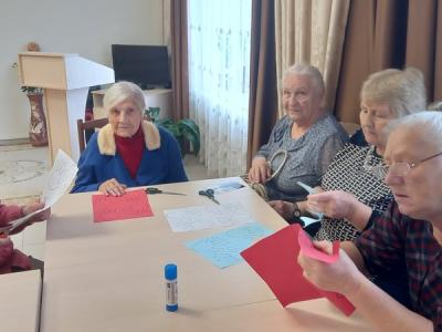 К празднику народного единения и дружбы организатор совместно с пожилыми людьми делали голубя из бумаги. Голубь — символ мира, спокойствия, любви. Работу выполнили в виде аппликации. Вырезали нужные детали из цветной бумаги, приклеили их на основную деталь работы. Перышки голубей сделали в виде ладоней — символизирующих дружбу, а цветную гамму подобрали в соответствии с символикой Российского флага. В ходе работы все участвующие подарили друг другу море положительных эмоций и впечатлений.
