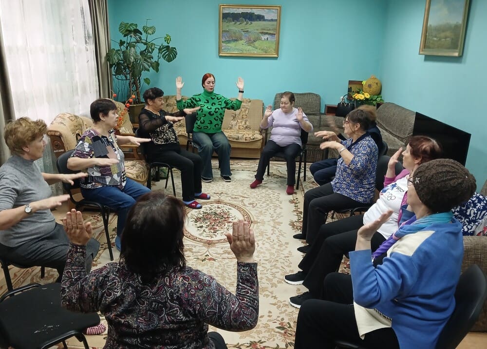 В Клубе «Активное долголетие. Вязьма» Вяземского комплексного центра социального обслуживания каждую пятницу проходит день физической активности. Тренер Т.В. Шебеко предложила участникам клуба комплекс упражнений дыхательной гимнастики, адаптированный для пожилого возраста.