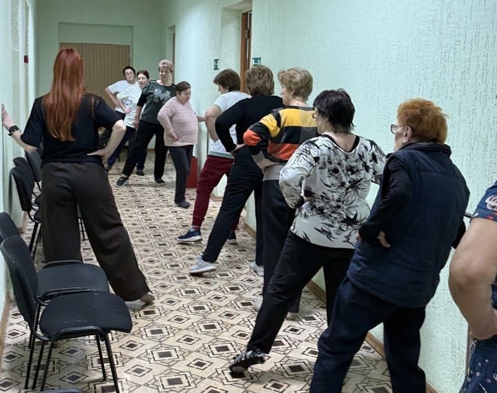 В Клубе «Активное долголетие. Вязьма» Вяземского комплексного центра социального обслуживания тренер Т.В. Шебеко провела занятие по оздоровительной физкультуре, направленной на улучшение управления движениями со стороны высших отделов центральной нервной системы.