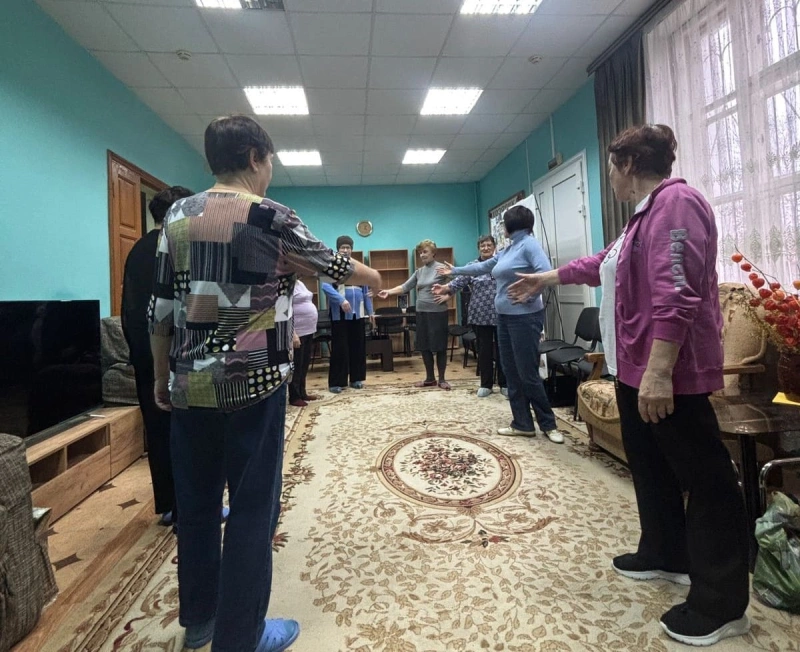 Активный день в Клубе «Активное долголетие. Вязьма» Вяземского комплексного центра социального обслуживания населения начался с танцевальной разминки. Пожилому человеку легко и комфортно двигаться под музыку близкую ему по духу и менталитету. Поэтому Э.А. Решетникова для комплекса танцевальной разминки выбрала движения русского народного танца. Члены клуба быстро освоили новые движения, и разминка превратилась в плавный русский хоровод.